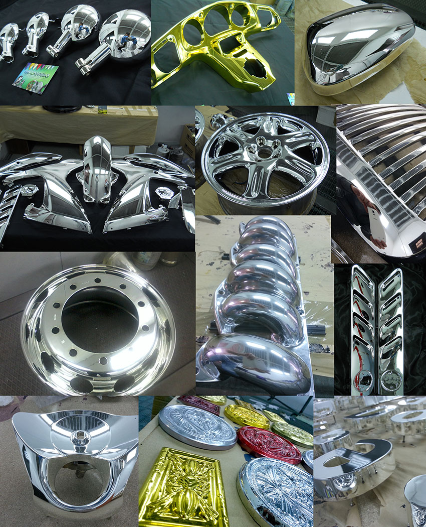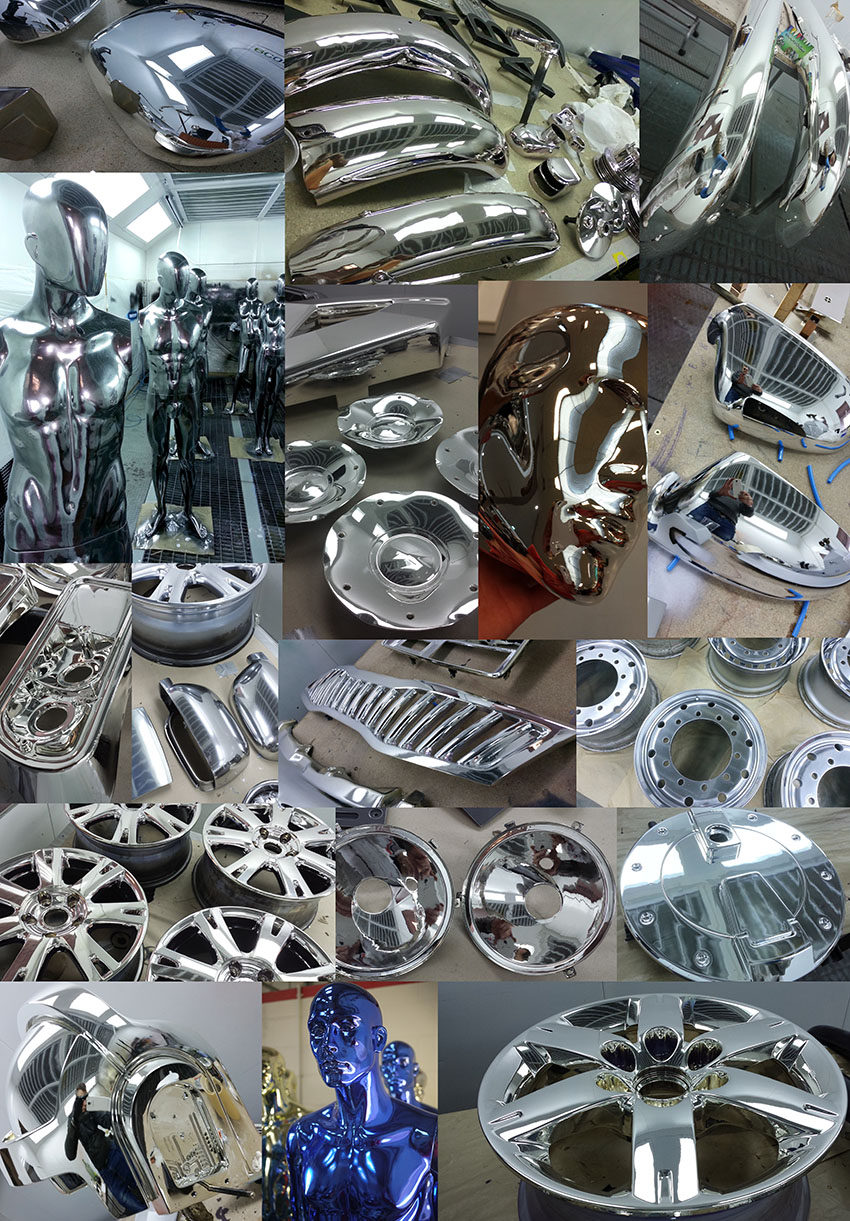 Podemos cromar todo tipo de materiales, sin excepción: PLASTICOS, METALES, VIDRIO Y SUSTRATOS POROSOS.